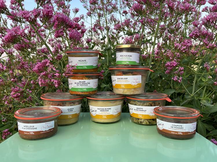 Tous les plats sont fabriqués en Ardèche par notre partenaire TERRAE qui vous accueille également dans son restaurant à Châteauneuf-du-Pape (www.terrae-truffe.fr).